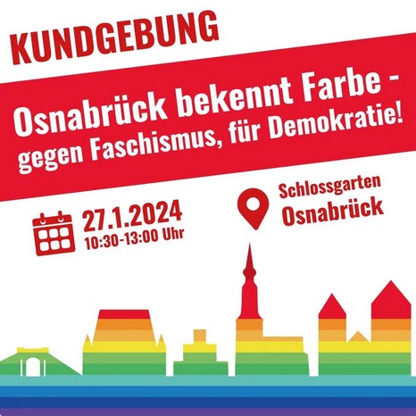Das kommenden Wochenende ist besonders, denn der Samstag 27.01. ist Tag des Gedenkens an die Opfer des Nationalsozialismus. Wir alle sind aufgerufen uns für Menschenrechte, Nächstenliebe und Gerechtigkeit einzusetzen. Lasst uns das tun auf Demos, mit Widerspruch bei verachtenden Parolen in Schule, Betrieb oder Club - eben überall im Leben.
