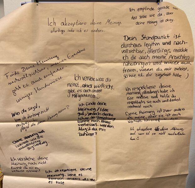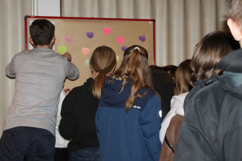 Am Freitag den 9. Februar wurde im Rahmen eines Jugendgottesdienstes das Kreuz auf der Weltkugel verliehen. Dies ist das Zeichen der evangelischen Jugend und wird einmal im Jahr an neue Mitarbeiter*innen verliehen. Der Jugendgottesdienst wurde unter dem Motto der Jahreslosung: Alles was ihr tut, das tut in Liebe, abgehalten. Dabei konnten die Teilnehmenden, aufgebaute Stationen bearbeiten, die sich thematisch auf die Jahreslosung bezogen haben. Darunter gab es beispielsweise eine Station, an der man sich Tattoos in Form eines Herzens aufkleben konnte. Dazu konnte man an einer weiteren Station liebevolle Sprüche auf herzförmige Post-its schreiben und diese an eine Wand hängen. Am Ende des Gottesdienstes konnten sich die Teilnehmenden, beim verlassen des Saales, eins von diesen Post-its mitnehmen. Bei einer weiteren Station sollten die Teilnehmer*innen Formulierungen aufschreiben, um ein Nicht Zustimmen positiv mitzuteilen.
