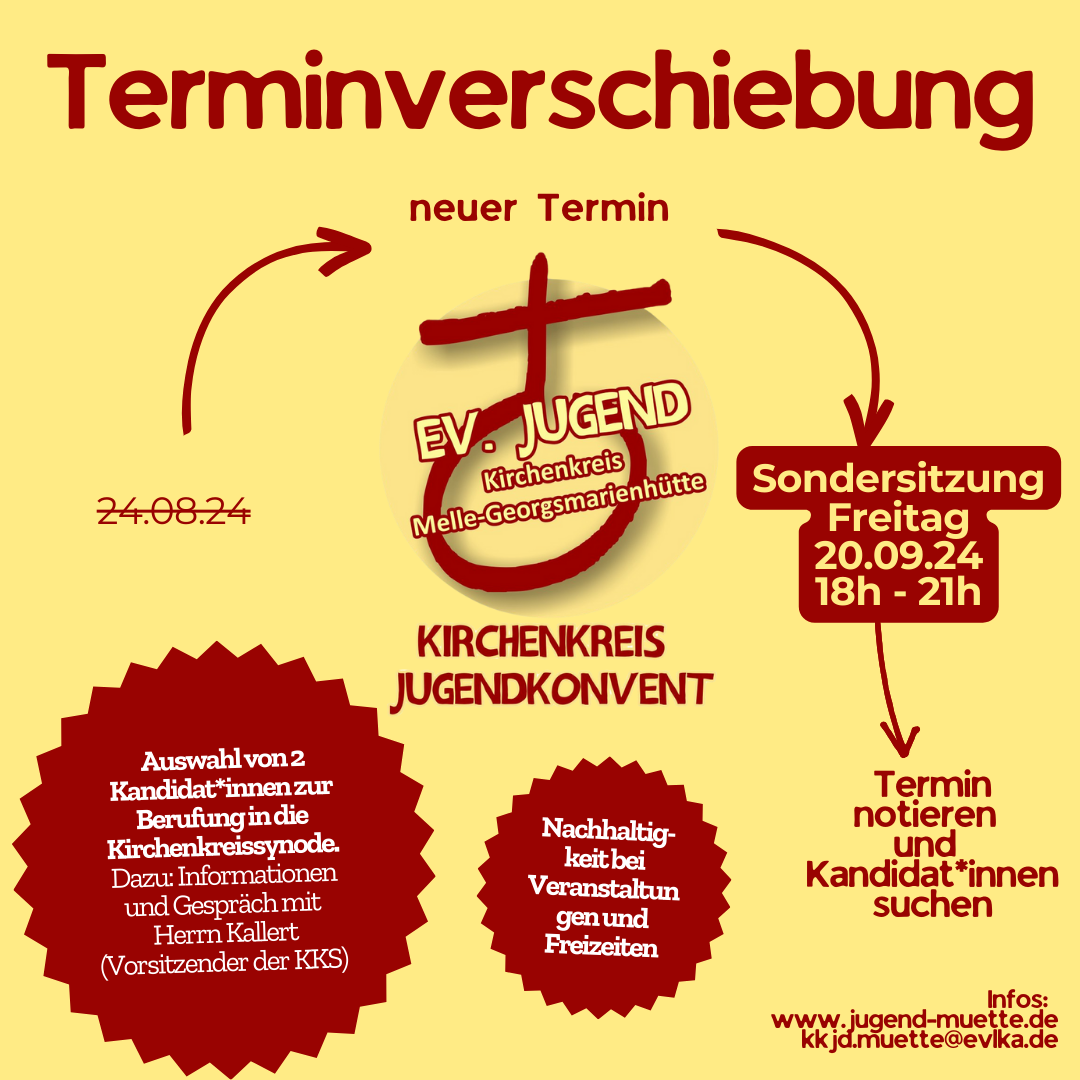 Macht euch bitte vorher schon Gedanken, wen wir ur Berufung in die Kirchenkreissynode vorschlagen wollen. Informationen dazu gibt es bei deinen Beruflichen und KKS-Delegierten vor Ort. Oder bei Henning und Nora im Jugenddienst.